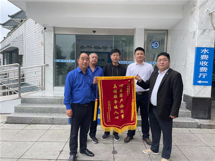 近日,上海新里程物業(yè)綠地隨州城際空間站物業(yè)服務(wù)中心負(fù)責(zé)人,把一面寫(xiě)有“心系用戶(hù)辦實(shí)事、真情服務(wù)暖人心”的錦旗,交到隨州水務(wù)集團(tuán)城市供水公司工作人員手中,對(duì)供水公司心系用戶(hù)、主動(dòng)上門(mén)為用戶(hù)服務(wù)的舉措表示深深的感謝。