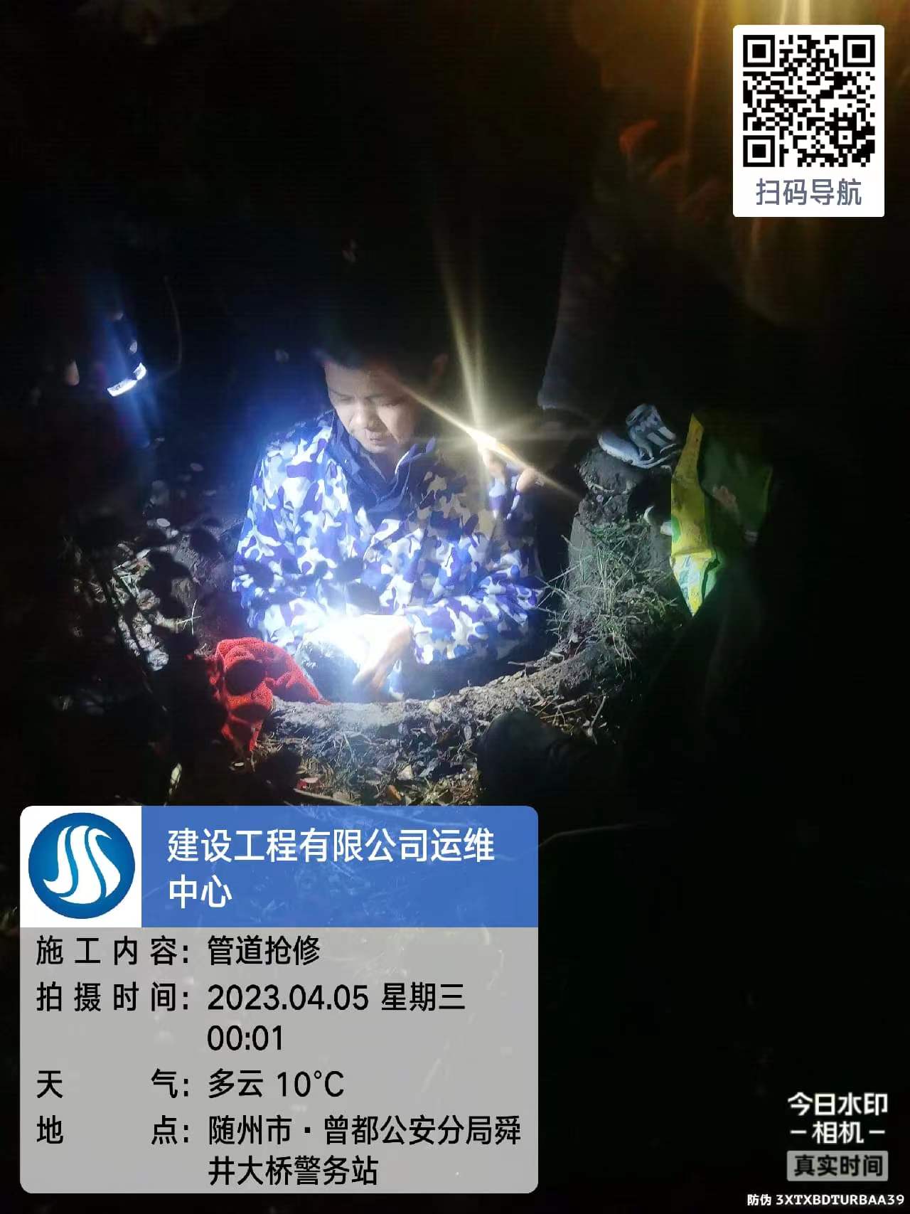 夜幕里,在探照燈燈光的照射下,為盡快修復(fù)供水管道,縮短停水時間,敲、拆、補(bǔ)、焊、聽......搶修隊(duì)伍一刻不停,緊張地忙碌著夜晚春風(fēng)微涼,他們的衣服被汗水浸透卻也渾然不覺。經(jīng)過連續(xù)3個多小時的奮戰(zhàn),搶修人員終于在翌日凌晨三點(diǎn)半順利修復(fù)了破損管道,恢復(fù)了通水,圓滿完成了搶修任務(wù)!