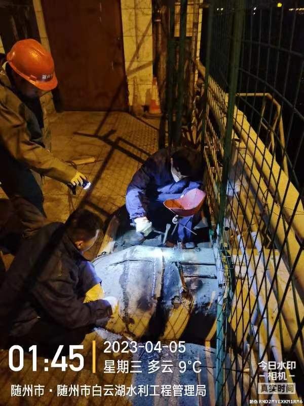 44日,水務(wù)集團(tuán)一條熱線工單,反映位于白云湖大壩舜井大橋路段處一根DN700的主供水網(wǎng)破裂需盡快修復(fù)。盡管已是夜間,水務(wù)集團(tuán)維修人員仍火速趕至現(xiàn)場,當(dāng)即確定漏水管線影響范圍,及時關(guān)閉閥門并向受影響小區(qū)發(fā)布停水通知。