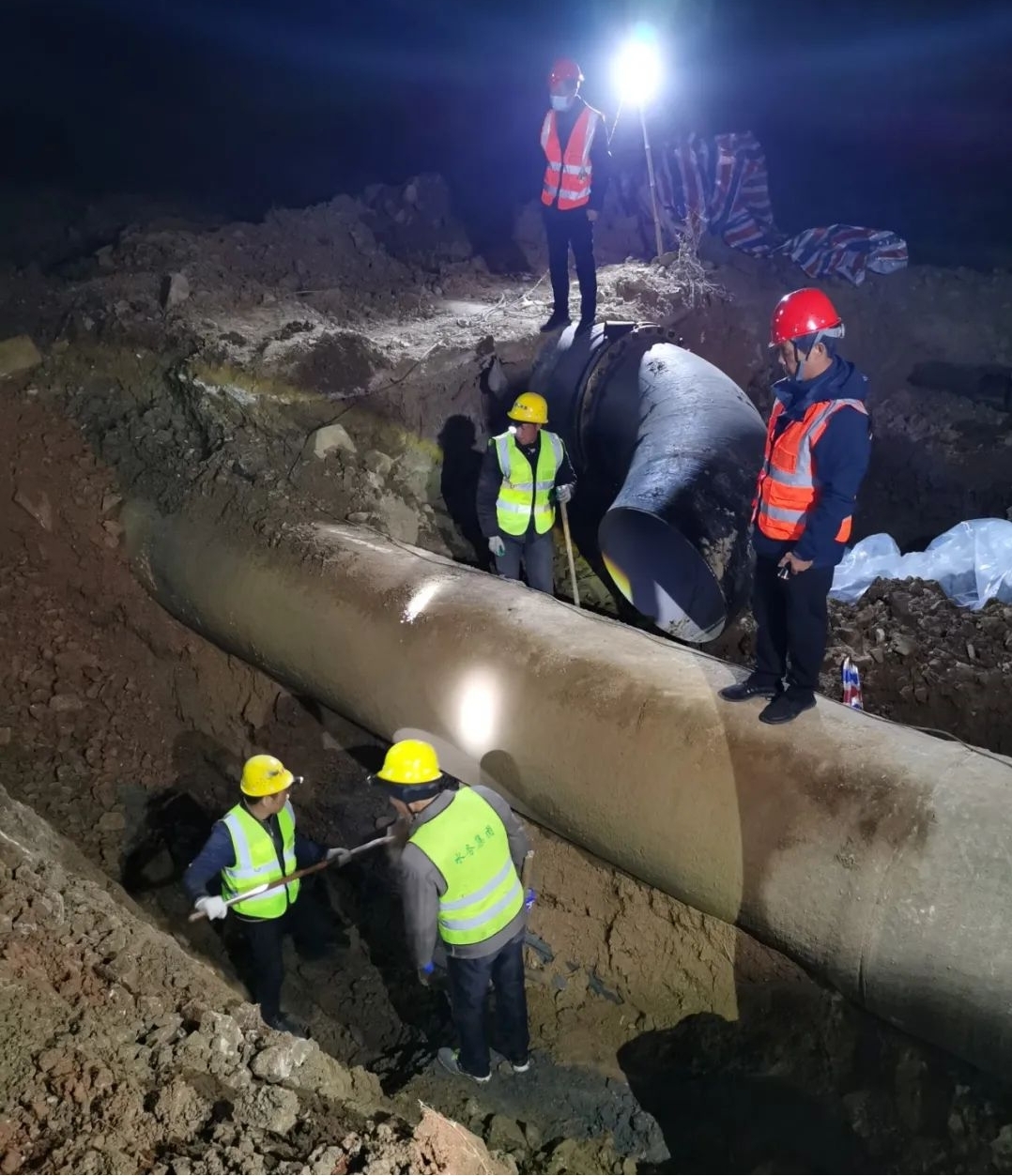 經(jīng)過(guò)24小時(shí)不間斷連續(xù)奮戰(zhàn),12月7日17時(shí)30分許,隨州城區(qū)?水河?xùn)|岸生態(tài)環(huán)境提升工程PPP項(xiàng)目-DN1000供水主管道遷改工程新舊管道順利連接。