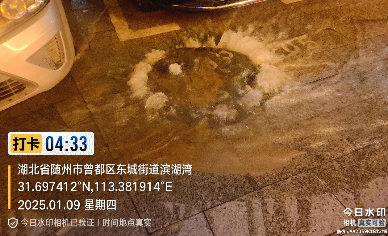 1月9日凌晨4時,隨州水務熱線電話驟然響起。“濱湖灣小區(qū)門口水管破裂,水一直在往外冒!”電話那頭,群眾焦急的聲音傳來。這通熱線,如同戰(zhàn)斗的沖鋒號,城市供水公司運維中心工作人員迅速響應,在接到指令的第一時間,便迎著刺骨的寒風奔赴現(xiàn)場。